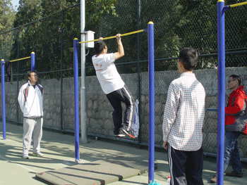 检查组抽查了学生体质健康标准测试情况,对初中二年级、高中二年级各10名男生、10名女生进行了立定跳远与引体向上的现场测试,测试成绩将会在后期公布。