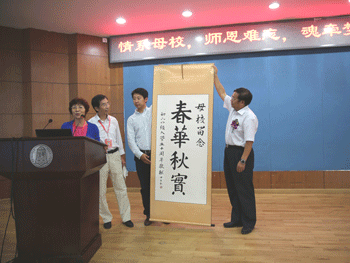 校友向母校校友会赠送书法作品《春华秋实》 bg真人娱乐初64级校友大合影