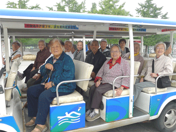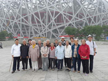 之后,离退休工作领导小组组长、党委副书记张洁带领老同志们乘坐学校的中巴车开始了环城之旅。在旅途首站鸟巢,老同志边听景区导游的介绍,边坐着电瓶车参观水立方、国家体育场,感受奥运文化。旅游车还带着老师们经过中轴路、国贸、中央电视台新址、前门、金融街、昆运河、颐和园等地方。