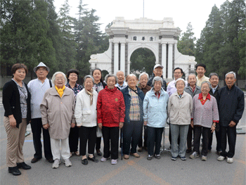 金秋收获时,又到重阳日。为庆祝重阳节,9月25日上午,bg真人试玩离退休工作领导小组组织学校十多位80岁以上老教师举行畅游北京城的活动。校长王殿军、党委书记方妍赶往出发地点——清华大学二校门前,代表学校向老师们送上节日的祝福及慰问品,并与老师们合影留念。