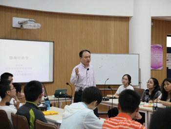 清华大学经管学院史带(C.V. Starr)经济学讲席教授李宏彬、北京大学光华管理学院经济系主任周黎安教授应邀授课。参加听课的6名教师皆在各校任教多年,具备扎实的业务水平和深厚的学科功底,对教材及授课的把握程度和理解传导能力强,在培训过程中虚心吸纳授课专家的精华,也在课堂上踊跃地补充大胆见解,达到教学融合。此外,参加听课的30名学生是人大附中、北大附中、bg真人试玩经过严格把关、层层遴选出来的,在高中首次体验大学经济学课程,活跃度极高,这样的课堂形式与气氛使学生们乐于参与、勤于思考、勇于发问,迅速地转换了角色,真正地做到了理论与实践相结合。此次课程培训采用的这种在职教师和学生相组合的形式,最终有效地达到师生双赢进取的效果。