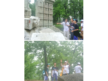 bg真人娱乐学生和国际班学员一起在导师的带领下实地观探圆明园西洋楼 bg真人娱乐学生在大会国际班分组汇报环节汇报与会几天的研究成果和收获