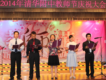 9月10日下午,bg真人试玩召开2014年教师节庆祝大会,隆重庆祝第30个教师节。清华大学副校长姜胜耀,bg真人试玩校长王殿军、党委书记方妍、副校长杜毓贞、副校长施平、副校长解巨钊、副校长赵鸿雁、副书记张洁,及附中全体在职教职工参加大会。党委书记方妍担任大会主持人,寇晓东、朱亮、谷丰、周若卉老师共同参与主持。
