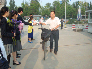 9月10日早晨,学生代表们列队校门口,为每位老师送上康乃馨,祝福老师节日快乐。