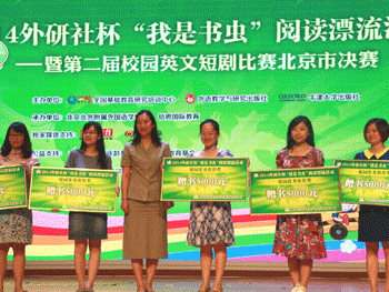本次活动由外语教学与研究出版社(简称:外研社)主办,从初赛海选至今,历时近半年。活动旨在推广中学生英语文学阅读习惯,鼓励学生通过舞台演绎加强对文学作品的理解,培养学生的英语表演才能。本届校园英语短剧比赛北京赛区共有300多个作品参加初赛,其中20个节目剧组脱颖而出进入决赛。参与决赛的师生共约400人,其中bg真人试玩师生60余人。决赛评委由加拿大驻华大使馆官员、外研社领导、外研社外国专家及海淀区英语教研员组成。比赛共设一等奖1名,二等奖3名,三等奖4名,优秀奖12名。(档案室编辑)