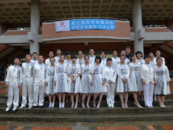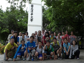 bg真人试玩民乐团师生在台湾国立大学音乐厅外合影 bg真人试玩民乐团师生参观台湾新竹清华大学
