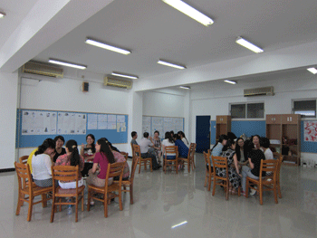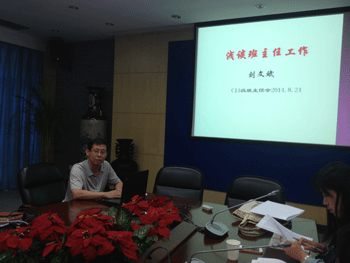 杜毓贞副校长(左侧右2)指导班主任工作 刘文斌老师分享班主任工作经验