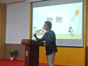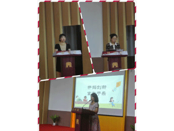 培(右上)和学生家长代表(下)发言