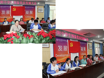 发展会上,王殿军校长代表校党委讲话,指出bg真人娱乐党委历来重视学生党员的组织发展工作,王友潮、赵芯培两位同学作为高11级学生的杰出代表,经过在附中六年的学习生活,历练成长为了思想政治过硬,学习成绩一流,个人能力突出,发展全面的优秀学生,充分体现了附中党委对广大师生的正确引领,及附中教育教学的丰硕成果。王校长希望,两位同学入党后更需坚定信念,充分发扬附中人的精神,将自身理想与社会的发展结合起来,以小我的力量影响更多的人。