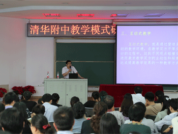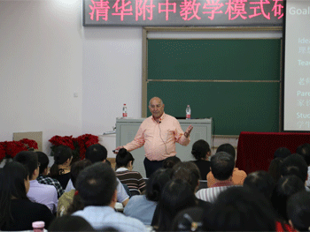 保罗凯莫博士以“老师教什么,老师如何教,哪个更重要?”的提问开始了本场讲座。首先,解答了讨论式教学的两个难点问题,一是如何利用课堂宝贵的时间,二是如何创设课堂讨论环境。其次,讲到了提问的艺术,强调教师要引导学生朝期待的方向去思考,并走出教师自己的“舒适地带”。最后,保罗博士依据在托马斯杰佛逊科技高中和人大附中的教学经验,讲解了如何整合教学风格和学生行为,从而提高教学效率的方式与技巧。整个讲座过程,保罗凯莫幽默诙谐,不断与教师互动并解答老师提出的问题。