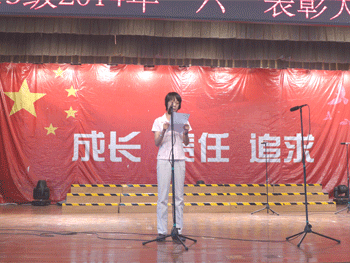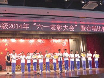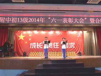 5月26日下午,bg真人试玩校团委与初13级年级组联合举办了2014年度“六一表彰”大会。bg真人试玩德育处副主任郎艳,初13级年级组长张苏,校团委老师刘露、任星阳,初13级各班班主任以及初13级全体学生共600多人参加了表彰大会。