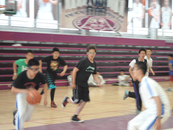 下午13:00-15:00是属于高中全明星队员的时间。分别由高一地理老师赵鹏和高二物理老师罗雷生所率领的全明星蓝队与全明星黄队在篮球馆展开了激烈的对抗。黄队曾一度落后18分,但最终实现大逆转战胜蓝队。双方球员在比赛中充分体现了不服输不气馁的篮球精神,在比分上你追我赶,让观众也都不由得精神紧绷。最终于15:00篮球派对在篮球馆落下帷幕。