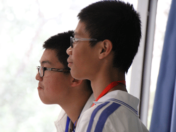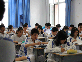 “别开生面”之二:学生监考。初二(13)班、初二(14)班同学成了本次活动的出题人,理所当然地也成了监考员。经过语文组备课组长王丽丽老师的事前简单培训,27个同学光荣的成为本次活动的监考员:每个班分别委派两名同学任监考老师,剩下的三个为流动监考,并负责拍照事宜。活动当天,只见他们佩戴精心设计的监考证,有条不紊地走进每个班级,在同学们略带惊讶的目光中从容分发试卷。下课铃响,又见他们陆续将试卷送回办公室,整齐按班码好归类。
