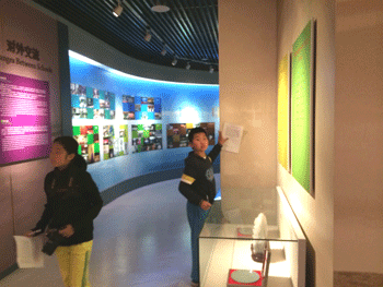 同学们在校史馆中找寻问题答案 校史展吸引家长游客认真观看