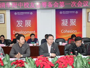 王殿军校长(前右2)介绍附中发展和百年校庆工作 与会校友代表合影…………………………………