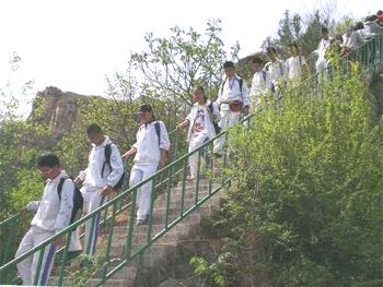 素有“塞外小三峡”之称的青龙峡此时已是山花烂漫、层峦叠翠、碧水淳淳。上午,同学们在辅导员的带领下登上了雄伟的水库大坝,凭栏望去,一片湖光山色,波光粼粼。随后,同学们沿登山步道倚蜿蜒的山脊而上,直至登顶玉皇台,环顾四周,明代古长城犹如巨龙环卧在高山峻岭之巅。在饱览了美不胜收的自然景色,享用了自带的美味午餐后,同学们便开始了下午的素质拓展活动。经验丰富的辅导员们将同学们分组,进行了形式多样的集体能、智力与勇气为一体的素质锻炼,评选出了优秀团队及个人并颁发了奖品。