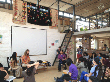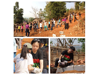国际部的学生聆听乐安东博士与李旸的讲座 国际部学生与景颇孩子合作铺道路