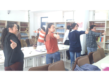 老师们做“端笔”游戏 老师们做连数字游戏