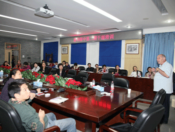 保罗凯莫博士以一个生动有趣的图片识别小活动开场,然后从基本课程设置、科学实验室、神经科学研究、互动式教学等方面详细介绍了托马斯杰佛逊中学的特色。托马斯杰佛逊中学是美国最好的高中之一,这所著名的科技中学注重通过加大科研力度、培养学生科研兴趣等途径激发学生的创造能力。保罗凯莫博士认为托马斯杰佛逊中学的教学方式与中国学校目前的最大不同点在于:事实性的内容由学生自学,课堂上老师重点培养思维能力(build the brain),课后作业则是让学生自学接下来要新学的内容。临近报告尾声,保罗博士还和与会老师们进行了关于互动式教学方式的热烈探讨。