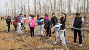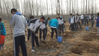 在活动现场,每个同学脸上都洋溢着幸福的笑容。一个个树坑的挖成,一颗颗树苗的栽下,象征着一份份绿色的希望;每一滴汗水的流下,每一铲泥土填充,则代表着每一个人的奉献和爱心。因为大家知道植树不仅仅是在为我们国家作贡献,同时也是在为他们自己生长、生活的环境尽一份自己的力。经过大家的努力,植树活动圆满完成。植树活动后,同学们前往百泉山进行了登山锻炼,在大自然中放松身心,磨练自我。