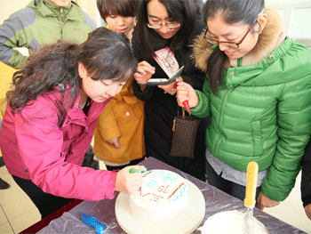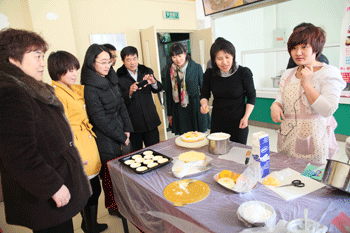女教工们现场DIY节日蛋糕 女性平衡膳食营养学讲座