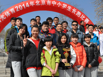 3月15日,阳光体育2014年北京市中小学生长跑比赛在北京青龙湖公园举行。bg真人试玩选派12名同学组成中长跑队,分别参加了初中男子组(3000米)、初中女子组(3000米)、高中女子组(3000米)和高中男子组(6000米)的比赛。经过激烈的角逐,最终bg真人试玩获得高中团体总分第一名的佳绩。