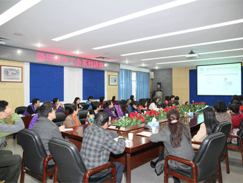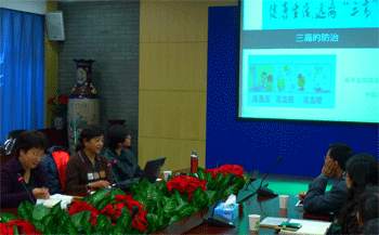 张洁副书记(左侧右3)主持讲座 申淑兰大夫(左2)作讲座