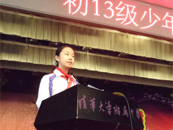 开学典礼在庄严的团歌中开始了,年级组长张苏向初13级少年团校表示祝贺,并代表全体教师向同学们提出了在团校学习及新学期学习和生活的三点期望:一、学会成长;二、勇于担当;三、追求理想。同时引用梁启超先生“少年智则国智,少年富则国富,少年强则国强,少年独立则国独立,少年自由则国自由,少年进步则国进步”的话勉励大家。初1313班的薛文慧代表全体学生发言,表达了同学们积极要求进步的强烈愿望。团委刘露老师宣布了初13级各中队与高13级各对口支部名单,团委任星阳老师向同学们介绍了团校课程安排及结业要求。