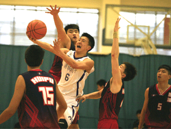 bg真人试玩女篮队员谌玥(白色球衣)篮下突破 bg真人试玩男篮队员马振宇(白色球衣)突破