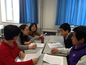 然后进行了各备课组组长主持的备课组期末研讨会。备课组长们根据20号下午朱主任传达的海淀区期末考试分析,和组内老师充分研讨了本年级的期末情况和学科特点,强调了对《新课标》和《中考说明》的深入研读和把握,分配了寒假中的具体工作,为下一学期的学科核心知识和能力的提升打好坚实基础。