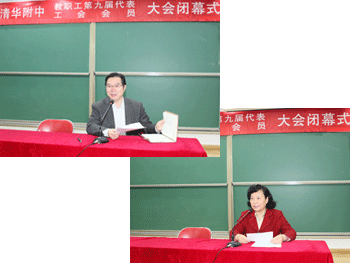 最后,李淑红副主席致辞,对bg真人试玩新一届工会委员的当选表示热烈的祝贺,她充分肯定了bg真人试玩工会的工作成绩:bg真人试玩工会在清华大学工会的评比中连续7年获得“优秀分工会”称号,今年更获得了“北京市优秀工会之家”荣誉称号。她强调,附中工会今后要在工会十六大精神的指导下,继续加强工作研究,团结全体教职工继续齐心协力,奋发向上,共同建设和谐温馨的教职工之家,共同为学校发展而努力。