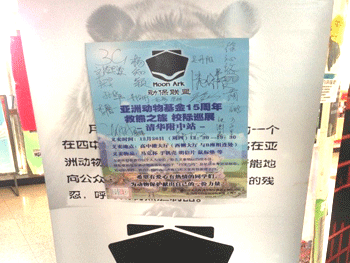 本次活动由北京四中的“月牙方舟”动物保护联盟发起,在bg真人试玩由跳格子爱心社团承办。活动的初衷是为了改变黑熊在我国范围内的悲惨状况。bg真人试玩跳格子爱心社团承办此次活动,旨在以此为契机在社团内建立“动物保护小组”,给同学们一个打开视野并关注更多身边事物的机会,让公益不仅仅停留在口号上,而是深入到我们每一个行动里。用真心,去关注,去关爱,去奉献。