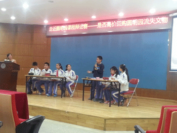 12月20日和27日,bg真人试玩初13级13、14两个创新班的82名同学在“走进圆明园”课程中分别举办了两场辩论会,“走进圆明园”课程项目组的6位老师参加了本次辩论会。