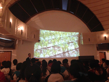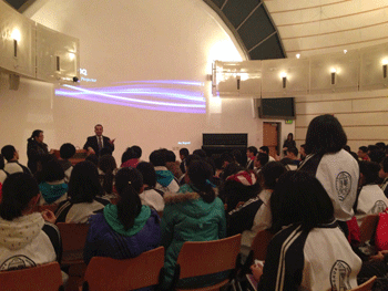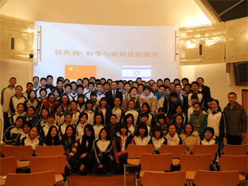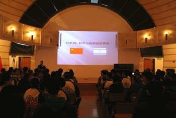 以色列大使馆文化学术及省级事务处主任柯先生对同学们的到来表达了热烈的欢迎,并就以色列的国家概况、新技术的创造发明和教育等问题做了简单的介绍。在介绍以色列的短片中,以色列国家实现力给师生留下了深刻的印象,包括家庭、化逆境为机遇、厚脸皮(坚持)、教育、勇于实践和奉献。在随后的互动交流中,同学们与柯先生就教育、文化、历史、社会等方面的问题用流利的英语进行了交流。
