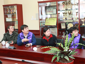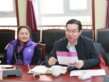 永丰学校执行校长孟卫东(左2)做工作汇报 bg真人试玩领导(右侧)听取分校工作汇报