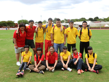 魏麟璎同学(左1)领奖 中国中学生田径代表团合影
