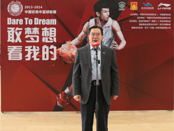 10月31日下午,“敢梦想,看我的!”——2013-2014赛季中国初高中篮球联赛开幕式暨揭幕战在bg真人试玩篮球馆隆重举行。中国中学生体育协会常务专职副主席、教育部学生体育协会联合秘书处副秘书长张燕军,中国中学生体育协会专职副主席王晓毅,李宁(中国)体育用品有限公司篮球品类总经理扬纲,非凡中国体育控股有限公司总经理梁慧仪,清华大学体育部副主任杜超,北京市体育局青少处处长唐彬,北京市体育局竞体处副处长柴士军,北京市体育局青少处副处长苏俊,北京市海淀区体育局副局长刘贵,bg真人娱乐校长王殿军、党委书记方妍等领导出席开幕式。