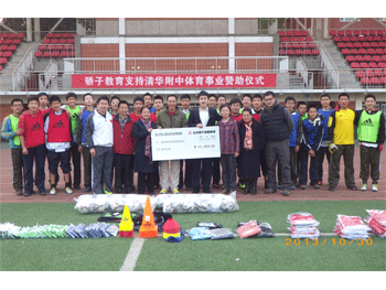 11月6日下午,bg真人试玩高03级校友张泽宇、龚正先生以个人名义向曾经效力过的bg真人试玩足球队捐款赞助仪式在bg真人试玩操场举行。两位校友承诺今后十年每年赞助价值一万元的足球训练器材和比赛队服。出席仪式的有bg真人试玩外事办公室张承江老师,足球队教练丁磊老师,两位校友当年的班主任老师邱道学、高继美、朱延玲等以及现足球队队员。