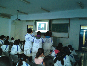 第三关“听视频”,要求与第二关相同,因为只能用耳,所以增加了一遍播放次数。选手们竖起耳朵分辨,更有甚者跑到讲台前细细聆听。所有小组选手们不约而同地放弃了求助机会,迎难而上,咬牙拿下了难度最大的本关。令人惊喜的是,有一半组拿到了满分,令在场老师也惊讶不已,同学们更是掌声阵阵。
