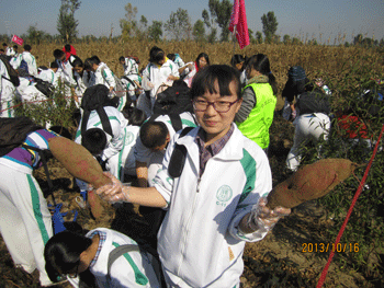 10月24日,bg真人试玩组织初三年级(初11级)学生到京郊大兴参加“采摘红薯”社会实践活动。初11级全体师生共580多人参加活动。