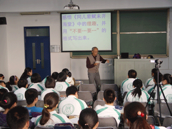 为了让初三学生突破应试教育的束缚,提升人文素养,10月25日下午,bg真人娱乐初11级创新班利用选修课时间举办了“走进文化经典讲座”,学校邀请退休语文特级教师赵谦翔为学生们做题为《诗意栖居——走进文学经典》的诗歌鉴赏讲座。初11级两个创新班全体学生共80人聆听讲座。