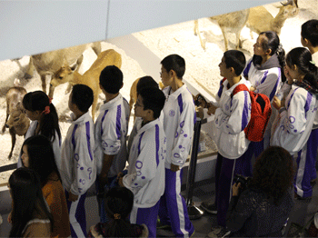 馆藏类型丰富多样的各类标本,激起了同学们的兴致。同学们依次参观了哺乳动物展厅、昆虫展厅、鸟类与爬行动物展厅、植物展厅、岩石展厅,并在自己感兴趣的标本面前,积极向讲解员询问,直到获得满意的解答,钻研好学的精神受到标本馆老师的高度赞扬。
