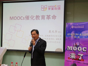 首先,聂风华老师以“MOOC催化的教育革命展”为题展开报告。报告指出,现在国际上MOOC已有Coursera、Udacity、edX三大网络平台,其中,edX是麻省理工学院和哈佛大学联手创办的非营利在线教育平台,向全球免费提供知名高校的优质课程。清华大学于今年5月加入edX,现已有五门课程上线。MOOC对于促进优质教育资源开发和共享,降低教育成本,促进教育公平,倡导终身学习具有重要意义。MOOC若与中学教育结合,应用于大学先修课程,不仅为学生的学习提供便捷,而且为大学的自主招生提供可量化的评价手段。