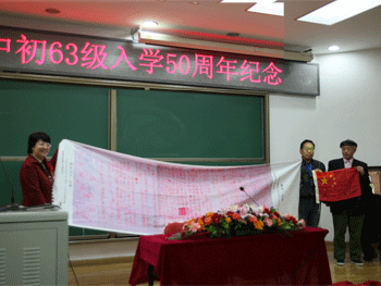 大会还放映了由各班校友精心制作的幻灯片。初631班代表于海南,初632班代表严皑,初633班代表邢抗美,初634班代表高凤山等各班代表先后发言,表达对母校的感恩,对同窗之情的怀念。