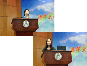 杜毓贞副校长(左上)、辛颖主任分别致辞 学生作工作报告(左上)、学生演讲