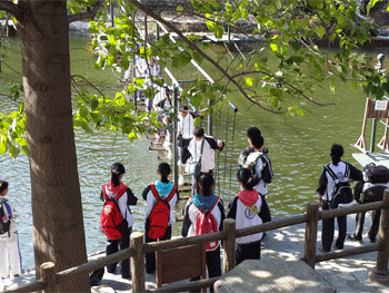 本次活动以部门为单位一共分为20个小组,每个小组混合搭配初中、高中同学。学生干部在参观游览、攀登高峰和挑战自我等项目中,通过交流不断拓展新思路,改进合作方法,展现出了优良的团队合作精神,整个活动在轻松融洽和谐的气氛中进行。