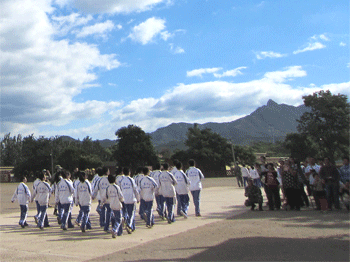 25日的开营仪式上,杜毓贞副校长和军训营营长分别作了动员讲话,激励大家要懂得“艰难困苦,玉汝于成”的道理,利用短暂的军事训练,磨练自己坚强的意志和吃苦耐劳的品格。尽管赤日当空,但在教官的严格训练和班主任的亲切关怀下,同学们的齐步走、正步走、集合及分列式等预定训练科目已初见成效同学们还将军训中的种种感受倾注到军训快报以及拉歌比赛等文艺活动中,各个班级在短时间内形成了班集体凝聚力。军训期间,大家观看了残疾人艺术团的演出,同学们都为演员们坚强的意志深深打动;此外,老师们还一起为在军训期间过生日的同学举办了别开生面的生日祝福会,让同学们感受到大家庭的温暖。