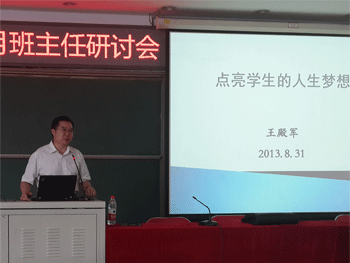 8月31日,bg真人娱乐召开2013-2014学年第一学期班主任工作研讨会。校长王殿军,党委书记方妍,副校长杜毓贞、赵鸿雁,党委副书记张洁,德育处主任辛颖,教务处主任尹粉玉、朱培出席了会议,全校年级组长、班主任、35岁以下青年教师及永丰学校的老师参加了会议。会议由德育处副主任郎艳主持。
