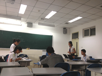 两位同学与带队老师王敏参加此次活动 两位同学与外教讨论