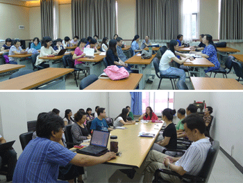外语国际部支部(上)、政史地支部(下) 选举现场 语文体育艺术支部(上)、行政支部(下) 选举现场